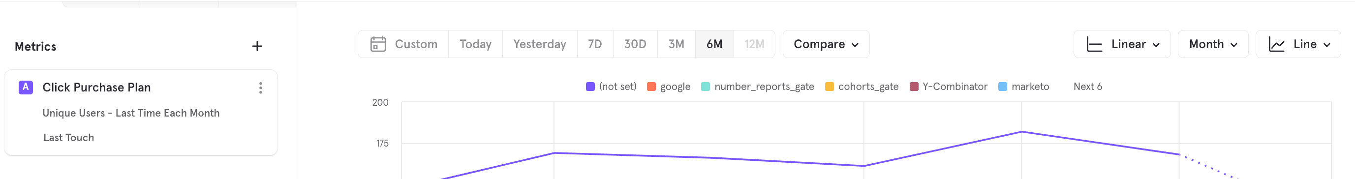 Step 4 - You have a working attribution model. By default, Mixpanel will assign the metric the Last touch model with a 30 day lookback window. To change the model, head to the metric section